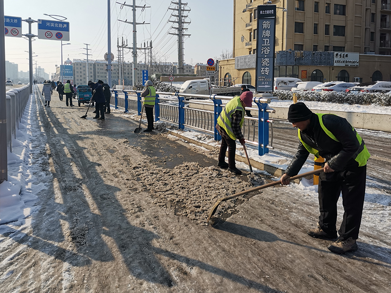2月4日至5日期間,全市出現(xiàn)連續(xù)降雪、寒潮天氣,給群眾的日常出行帶來很大不便。興滕公司積極響應(yīng)市委市政府號召,第一時間組織黨員干部職工到平行路進(jìn)行掃雪除冰,以實際行動踐行“我為群眾辦實事”。 在現(xiàn)場,大家不畏嚴(yán)寒、齊心協(xié)力,攜帶鐵锨、雪鏟等工具迅速投入到破冰除雪活動中,同時安排多臺鏟車上路清