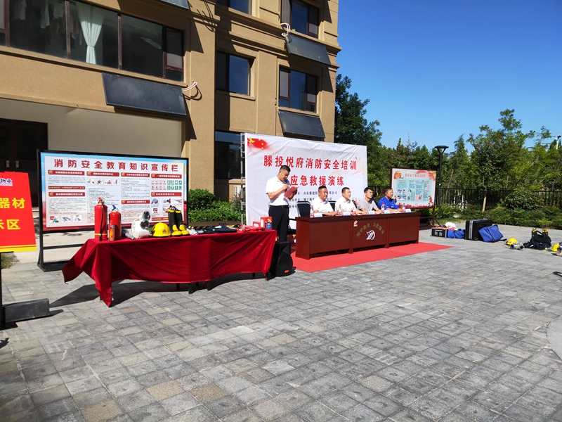 中秋國慶雙節(jié)將至,為進(jìn)一步提升雙節(jié)期間消防應(yīng)急救援能力,確保滕投集團(tuán)各下轄小區(qū)度過一個安全穩(wěn)定、歡樂祥和的佳節(jié)。9月21日下午,集團(tuán)萬德物業(yè)公司聯(lián)合滕投悅府物業(yè)服務(wù)中心開展第三季度物業(yè)消防綜合演練活動?;顒友埩吮毙两值牢幕飞鐓^(qū)領(lǐng)導(dǎo)、滕州藍(lán)天救援隊救援人員、集團(tuán)下轄14個物管項目經(jīng)理和安全