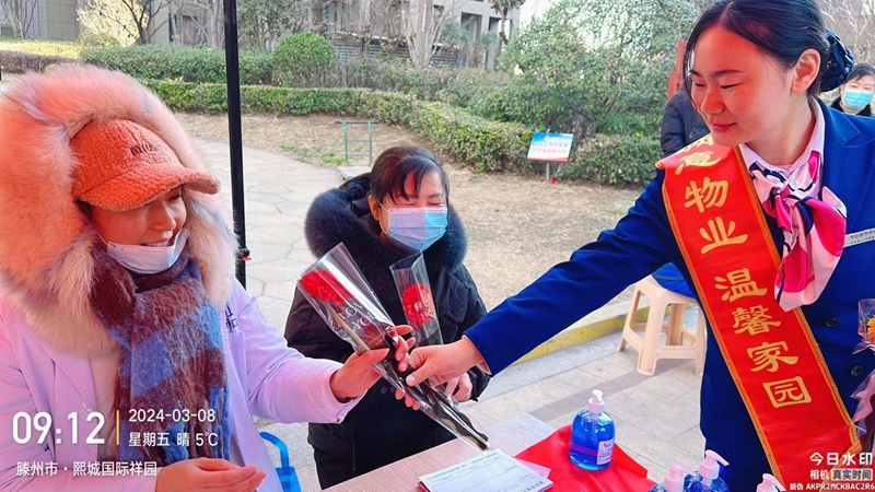 熙城國際誠園、東城名景、人和藍灣、滕投華府、大同印象多個物業(yè)服務(wù)中心開展了“溫馨滿溢、鮮花獻女神”活動,為女性業(yè)主和住戶們獻上了節(jié)日的鮮花,表達對她們的敬意和祝福。