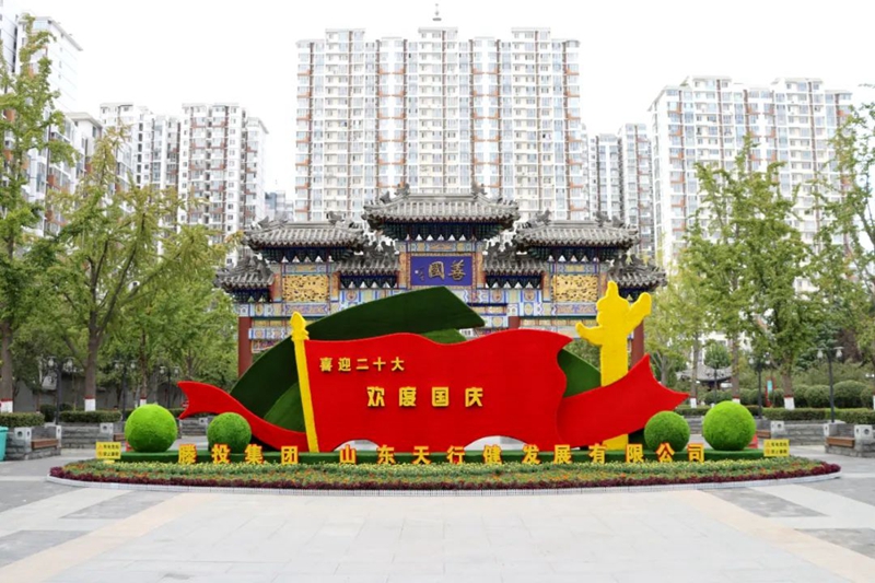 9月24日,滕投集團(tuán)天行健發(fā)展公司在九州清晏老縣衙廣場(chǎng)布置的一座大型花壇綠雕吸引眾多市民駐足觀看,為廣場(chǎng)又增添了一道靚麗的獨(dú)特風(fēng)景線。該花壇以“喜迎二十大 歡度國(guó)慶節(jié)”為主題,高5米、長(zhǎng)16米,由一萬(wàn)余株花卉綠植簇?fù)矶?,層次分明,錯(cuò)落有致。既有寓意“萬(wàn)眾一心、欣欣向榮”的國(guó)慶菊,又有體現(xiàn)“永遠(yuǎn)跟黨走、共建